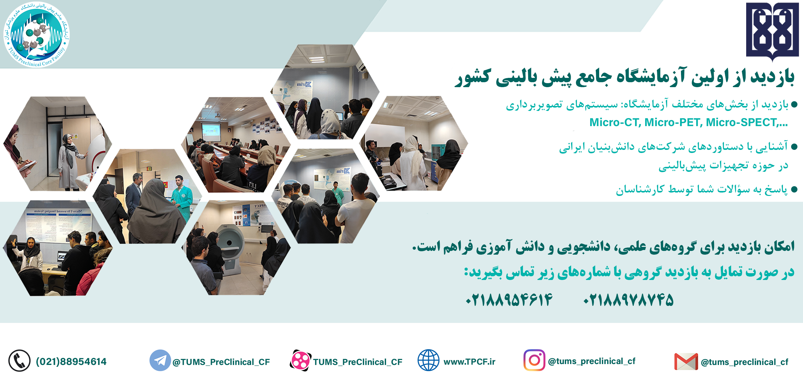 آزمایشگاه پیش بالینی دانشگاه علوم پزشکی تهران اولین کلینیک جامع پیش بالینی کشور مي باشد كه زمینه ی نهادینه شدن آزمایش های پیش بالینی و فرهنگ تحقیقات بنیادین مبتنی برای فیزیک تصویربرداری را فراهم می نماید. این آزمایشگاه مجهز به تجهیزات با تکنولوژی بالا است که همگی توسط شرکت های دانش بنیان طراحی و ساخته شده است. همچنين این مجموعه به شبکه آزمایشگاهی کل کشور متصل است تا محققان بتوانند با کمترین هزینه از خدمات این آزمایشگاه استفاده کنند.