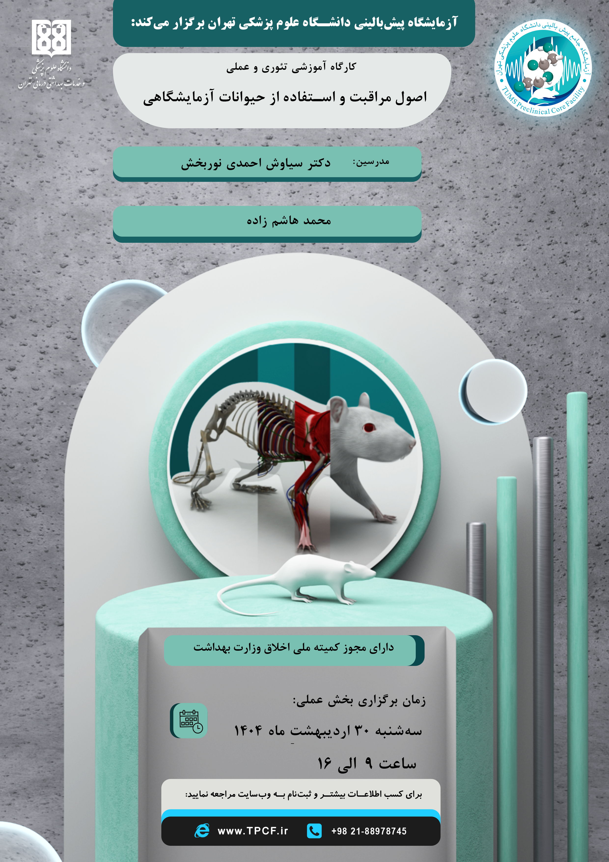 کارگاه آموزشی تئوری و عملی «اصول مراقبت و استفاده از حیوانات آزمایشگاهی»