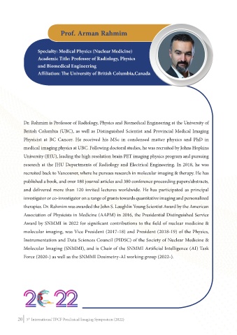 Dr. Rahmim is Professor of Radiology, Physics and Biomedical Engineering at the University of