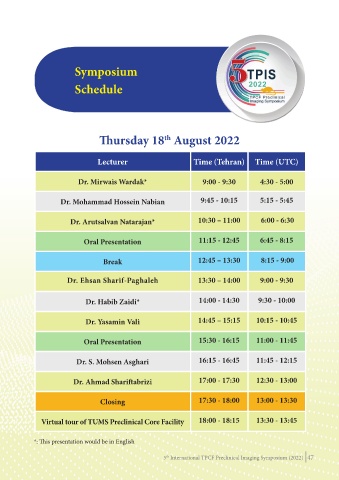 Virtual tour of TUMS Preclinical Core Facility 18:00 - 18:15 13:30 - 13:45